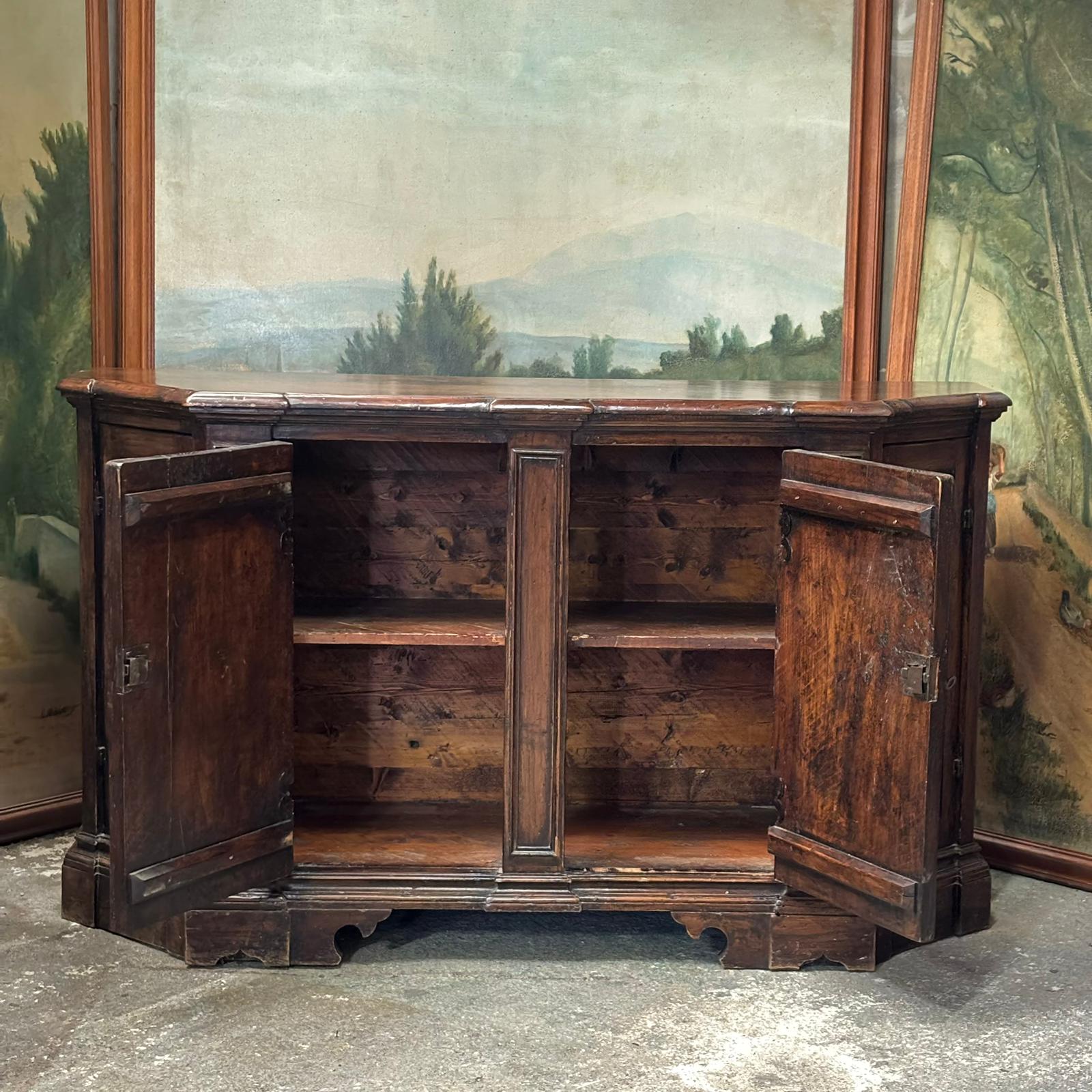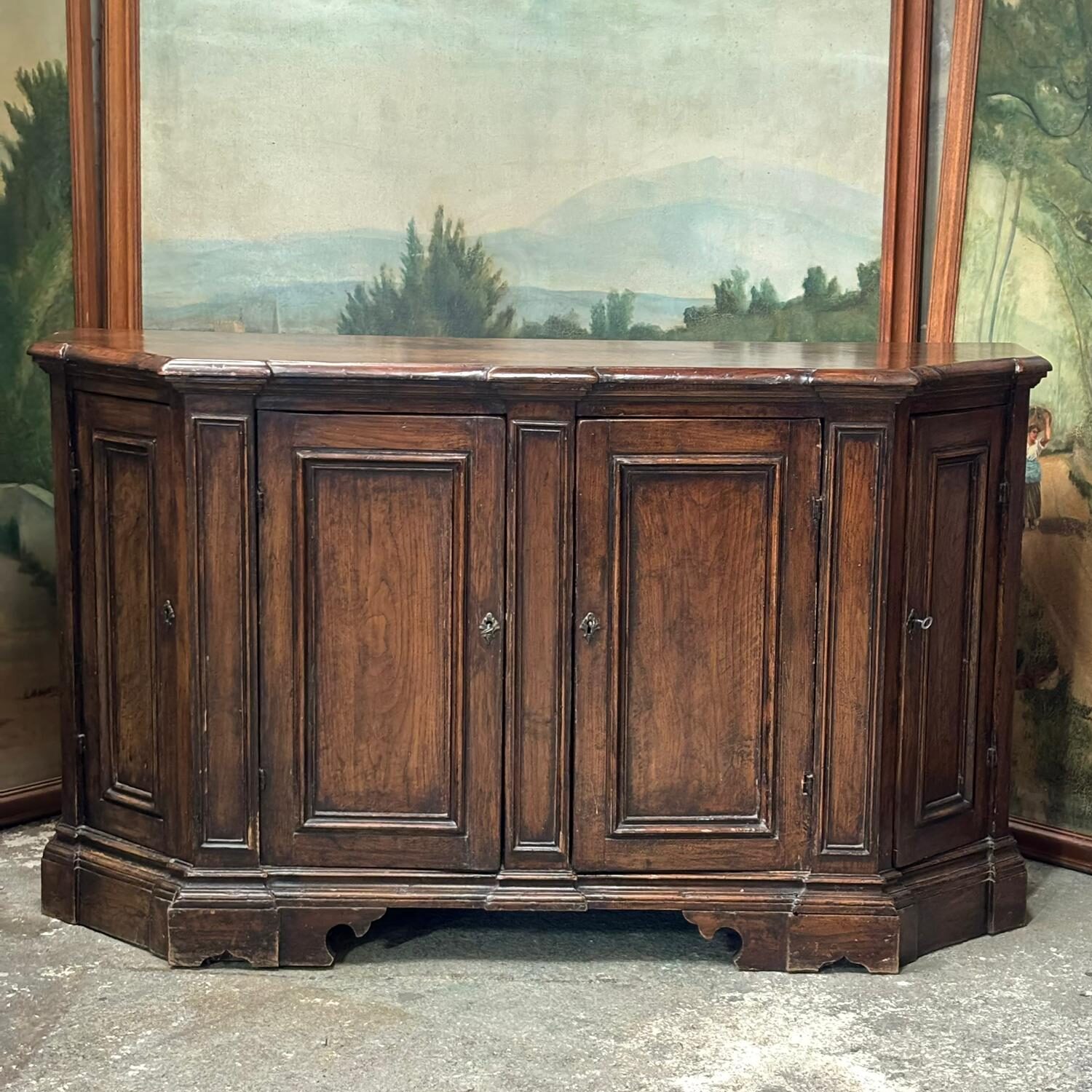 Joli buffet à forme trapézoidale ouvrant par 4 portes,